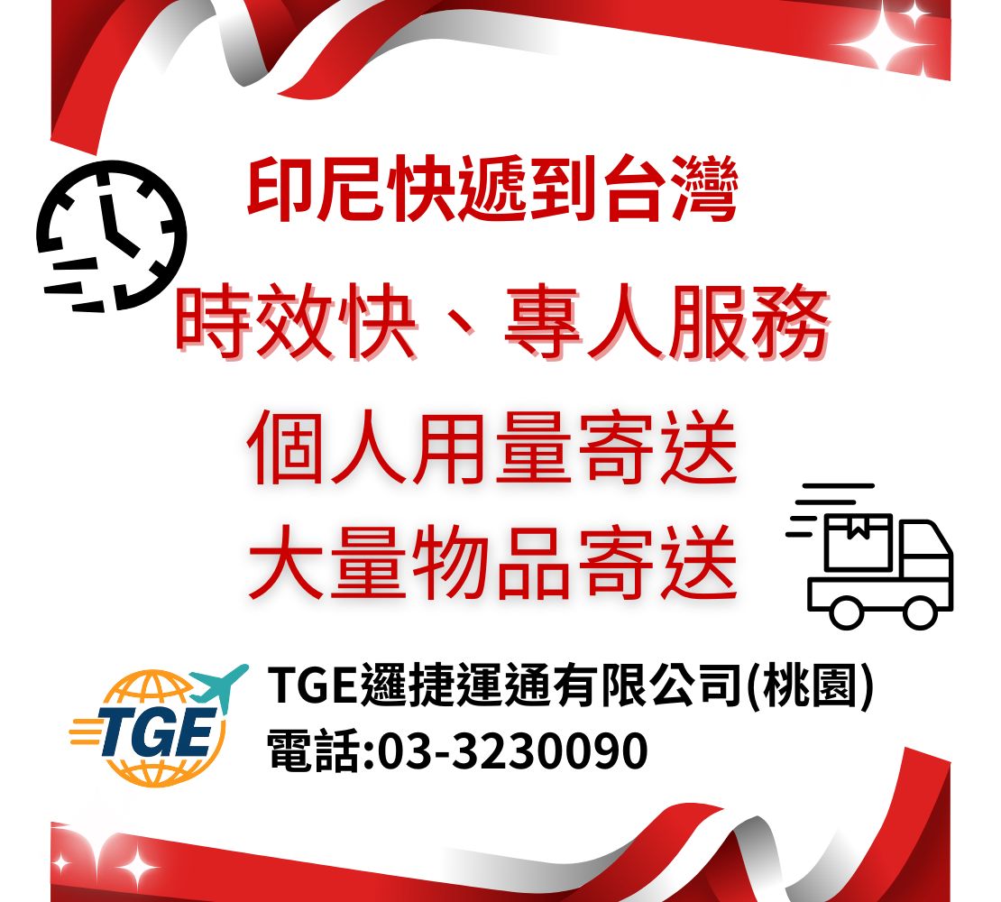 還在煩惱印尼寄台灣怎麼寄?清關會不會卡? 選擇 TGE 邏捷運通,讓跨國運送變得簡單、快速、有保障 ✔ 專人一對一服務 ✔ 印尼寄台灣快遞穩定出貨 ✔ 出貨前先確認,降低風險 ✔ 個人包裹 / 小量寄送也OK ✔ 流程透明,隨時掌握貨況